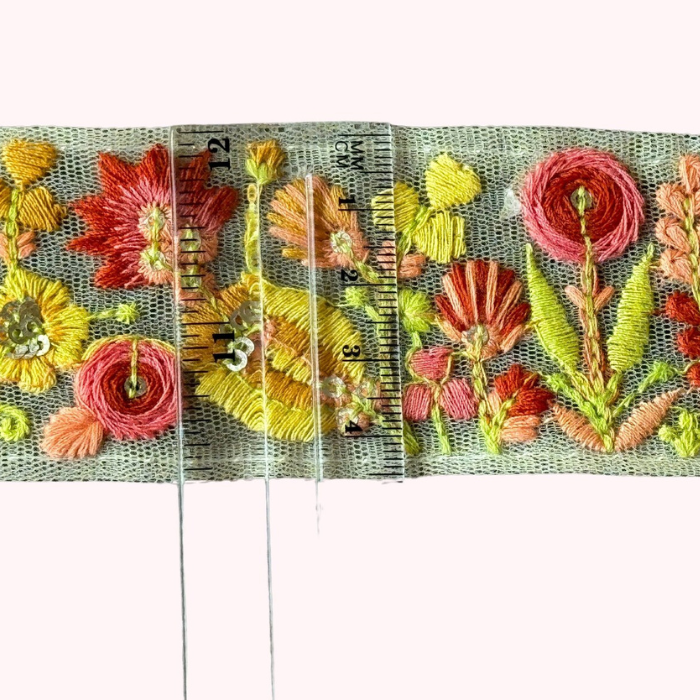 Floral Net Embroidered Trim – Net Lace Border for Sarees, Crafts & DIY Projects
